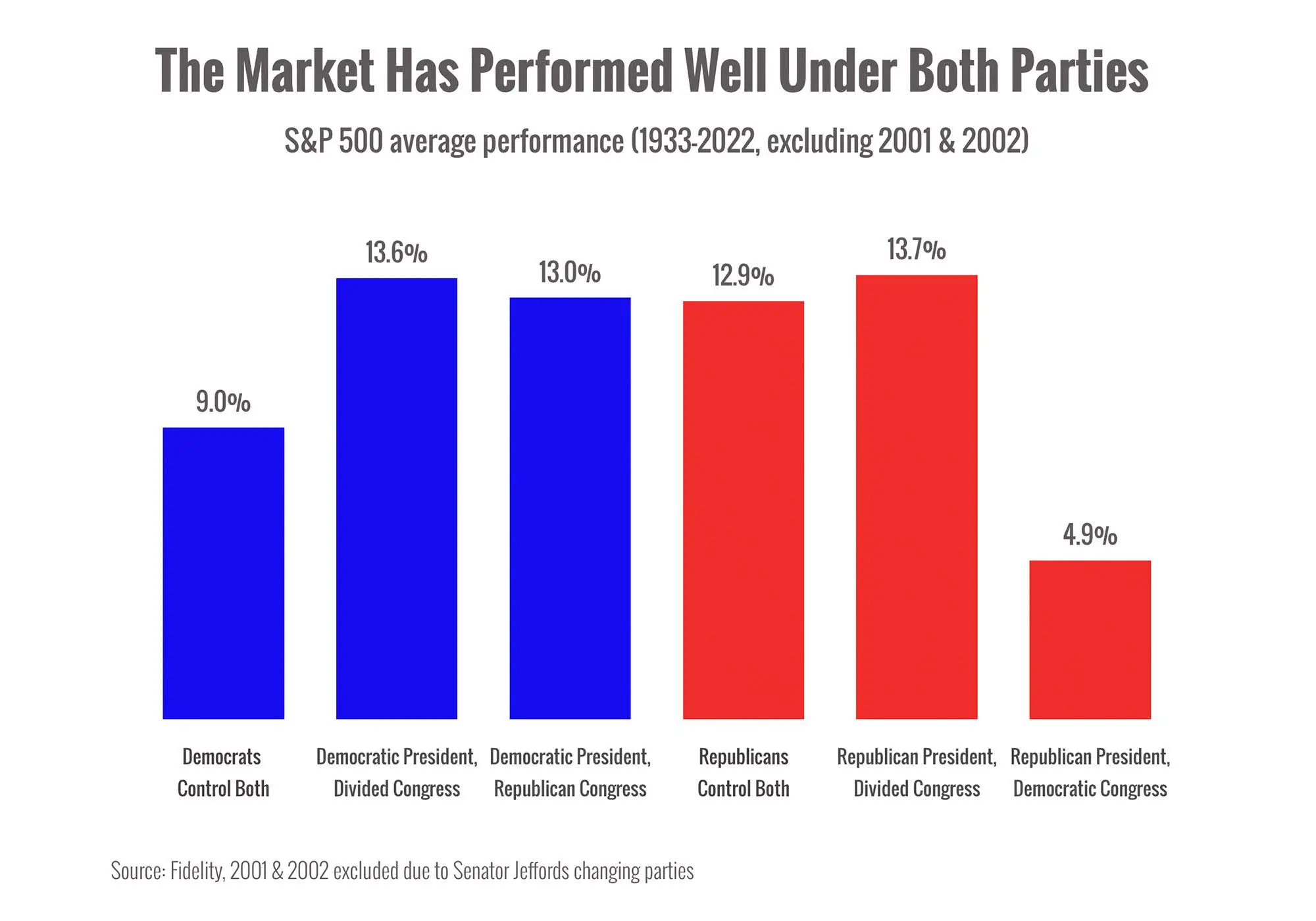 History shows that markets have performed well under both parties.2